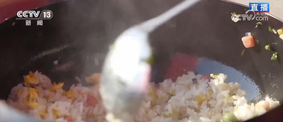除了看的,还有吃的。在现场,有新疆的干果、有机粮油,还煮起了江苏特色的汤圆、鸭血粉丝汤,炒起了扬州炒饭,让人一饱眼福还能一饱口福。